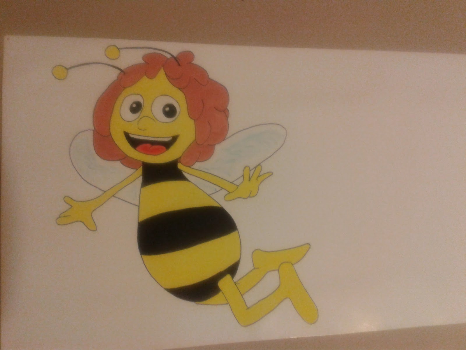 Mivel Kicsilány ovis ballagására kellett a kapura díszítést kitalálni, a téma méhecske volt, a csoport miatt, így mi mást készíthettem volna, mint méhecskéket. Kézbe vettem a nyomtatott kontúrokat és uccu neki kézzel rajzolni nagyban Maját és Vilit :) aki látta az tátott szájjal nézte. Igaz nem vagyok profi festő, csak egy kis zöldfülű kezdő, de nekem nagyon tetszett, s örömmel készítettem. Temperával festettem, így csak reménykedtem, hogy aznap nem fog esni, mert akkor annyi a festménynek, hiszem a temperát oldja a víz. Nézzétek ilyen lett: